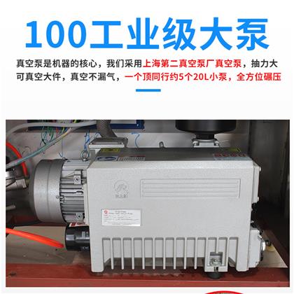 該機(jī)采用國(guó)內(nèi)知名品牌上海第二真空泵產(chǎn)生產(chǎn)的工業(yè)級(jí)大泵,引起德國(guó)普旭技術(shù),部分核心部件為全進(jìn)口,關(guān)鍵部位材質(zhì)含有微量金屬元素,真空泵壽命更持久,其中真空油為專業(yè)配方,耐高溫,比傳統(tǒng)真空泵油更耐用。抽氣速率為100m3/H,