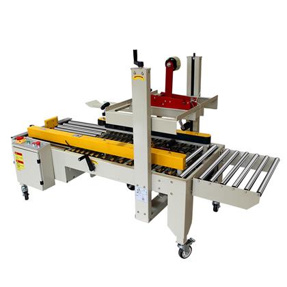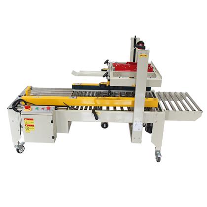 十字封箱機是一款組合型設(shè)備,主要是采用我們常用的半自動封箱機或折蓋封箱機完成一字封箱,然后通過側(cè)推機構(gòu)將紙箱進行90°轉(zhuǎn)向,然后進入半自動封箱機完成十字封箱包裝。