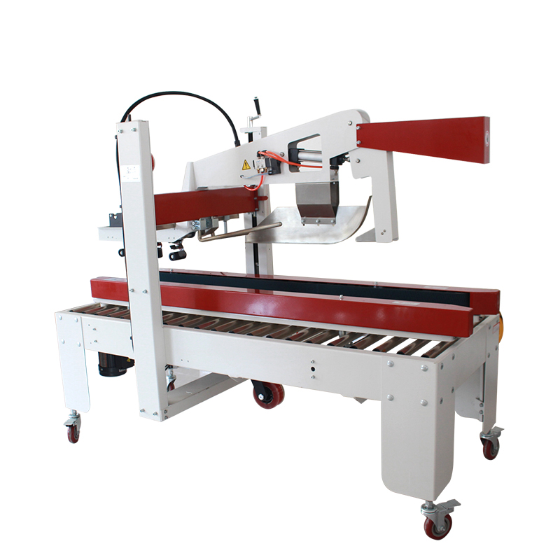 自動折蓋封箱機(jī)可自動折紙箱上蓋,上下自動貼上膠帶,采用即貼膠帶紙箱封口,封箱效果平整、規(guī)范、美觀。也可以采用熱熔膠封箱,封口更牢固,自動折上蓋,無需人手作業(yè);配套自動化包裝流水線使用將更能體現(xiàn)此機(jī)價值。