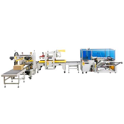 如需要打包可連接全自動打包,進(jìn)行多元化搭配。如在第一步與第二步間加入產(chǎn)品自動裝箱,屆時(shí)本包裝流水線將可以基本實(shí)現(xiàn)無人化全自動從開箱到打包好。