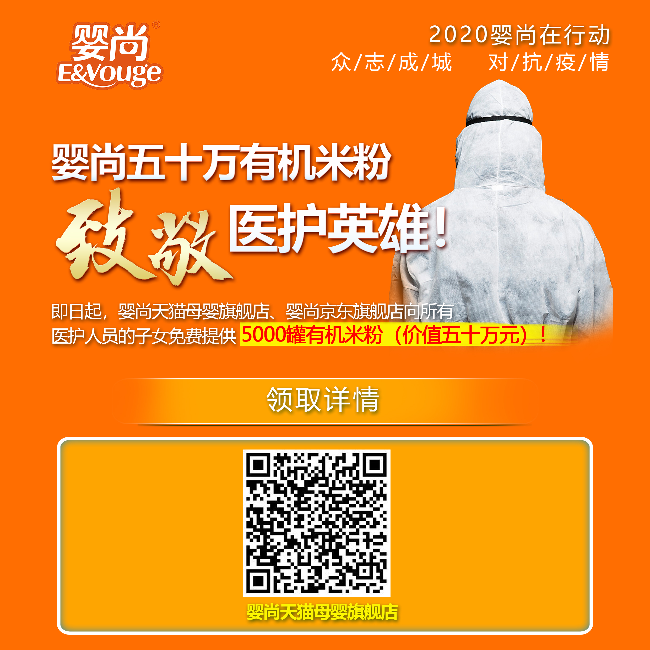 即日起,嬰尚天貓母嬰旗艦店、嬰尚京東旗艦店向所有醫(yī)護人員的子女免費提供5000罐有機米粉(價值五十萬元)!