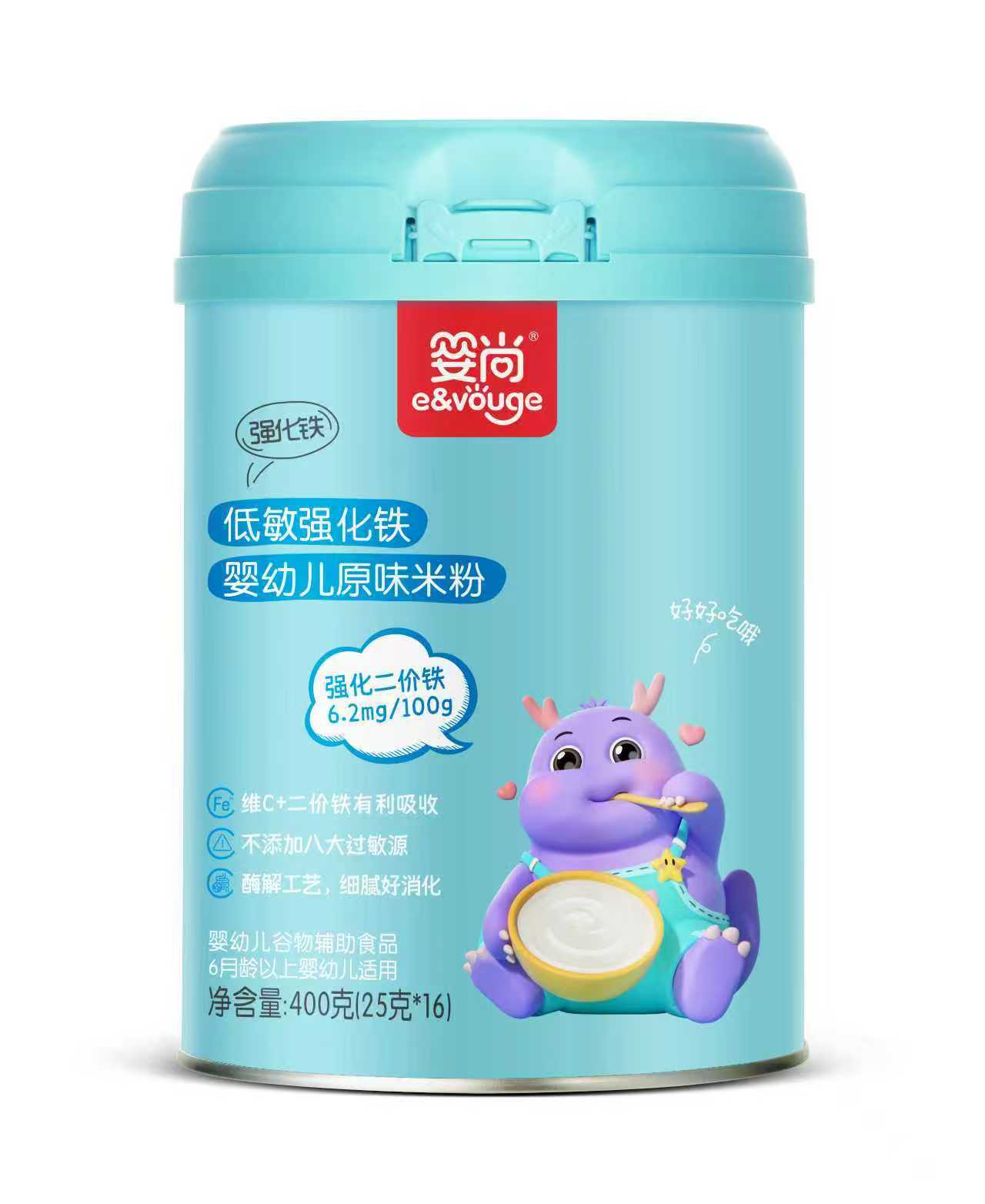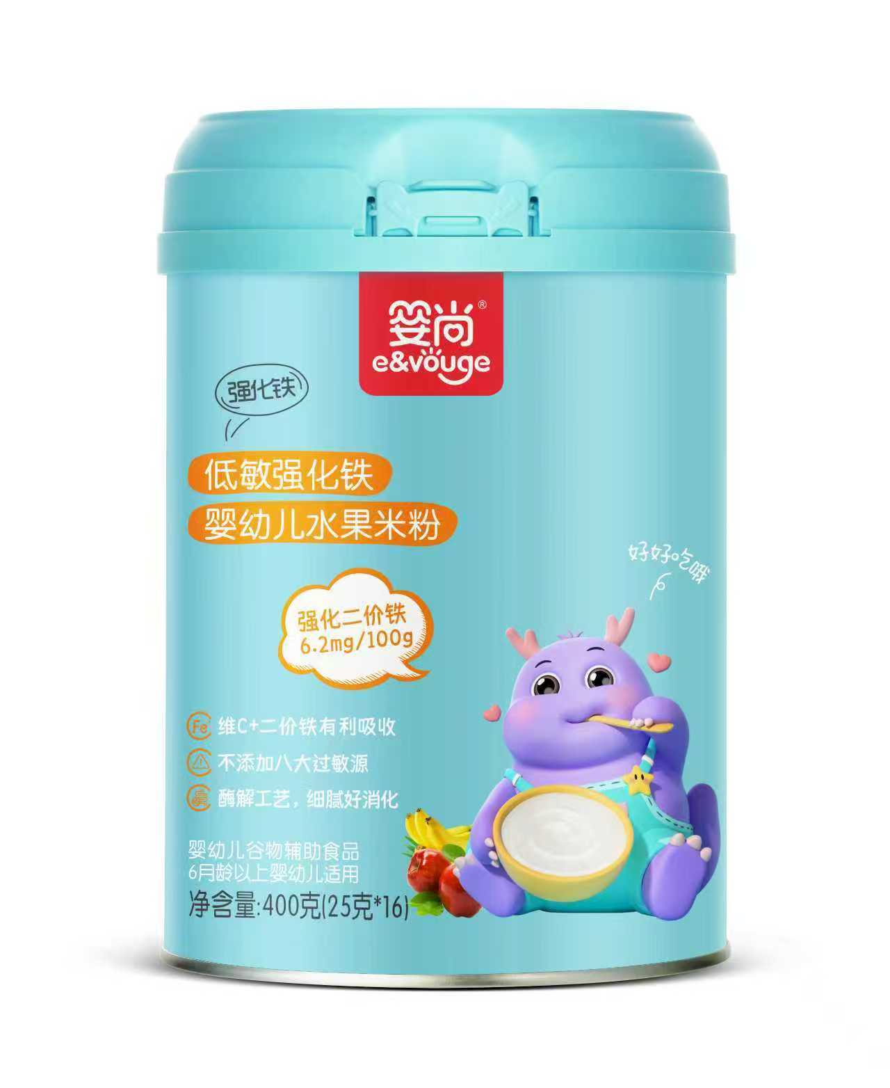 產(chǎn)品特點:嬰尚低敏強化鐵嬰幼兒益生菌米粉